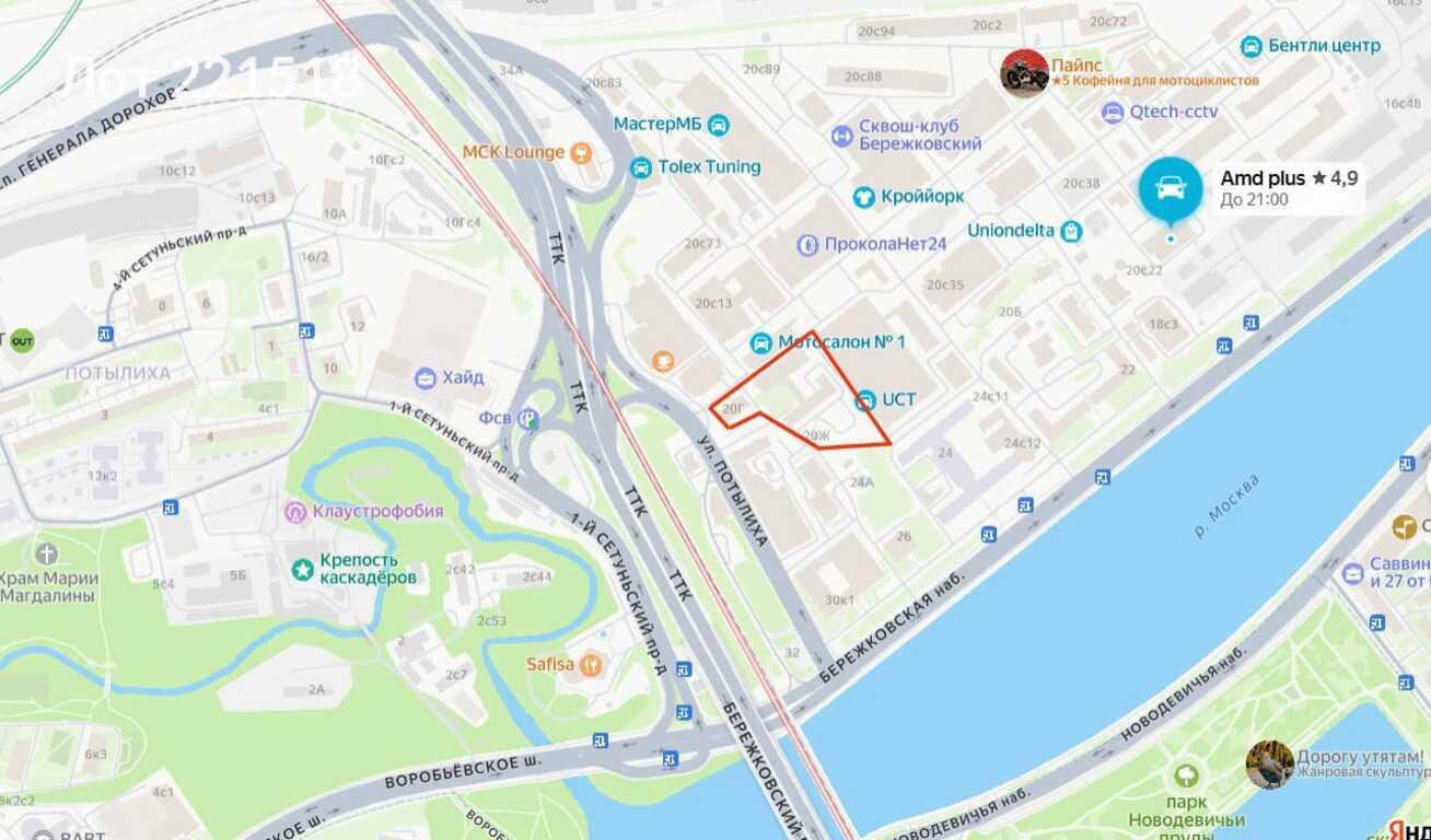 Лот № 221518 Продажа имущественного комплекса в Москве, р-н Дорогомилово (ЗАО). Объект включает в себя: Продажу здания и земельного участка ( КН: 77:07:0007006:1004) расположенных по адресу: Бережковская набережная 20Е. Общая площадь земельного участка 0,8 га находится в собственности и расположенных на участке Здания1 (БЦ класса В) - общей площадью: 6 420 кв.м. Этажность: 4 этажа. Год постройки: 1969г. и Здания2 (нежилое, складское)- общей площадью: 50 кв.м. А также: Переуступку прав аренды на земельный участок ( КН: 77:07:0007006:3065) общей площадью- 0,3 га и расположенного на участке Здания общей площадью: 1408 кв.м. расположенных по адресу: Бережковская наб. 20Г. Два этажа+ подвал. Год постройки 1990 г. Территория огороженная, со своей наземной парковкой. круглосуточная охрана, пропускная система, видеонаблюдение. Коммуникации центральные. Большие электрический мощности. Оптоволоконный интернет. Цена продажи: 20 млн.$. Схема сделки: продажа 100% акций компании.